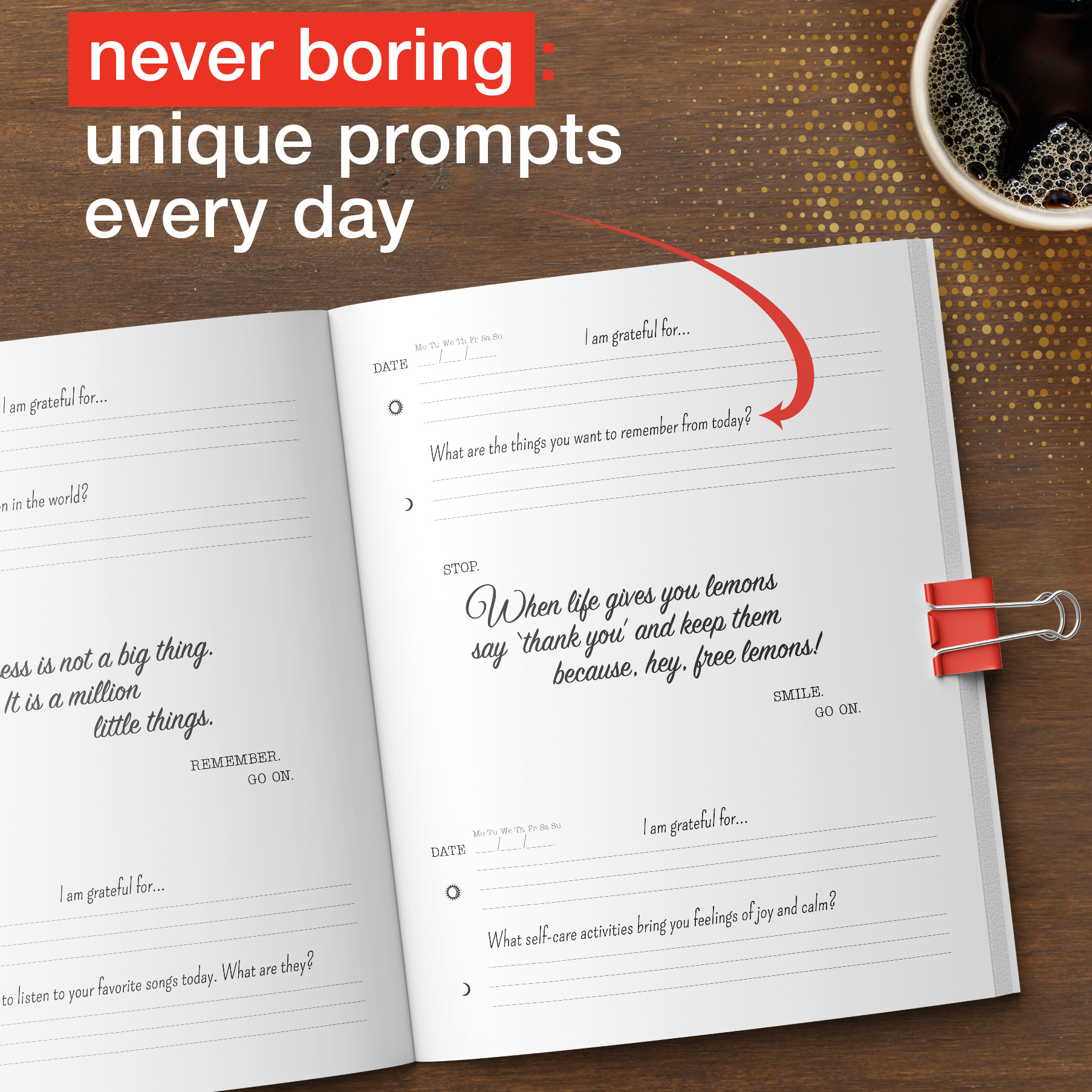 Buy your "5 Minutes to Happiness" gratitude journal now and start your journey to a happier life!