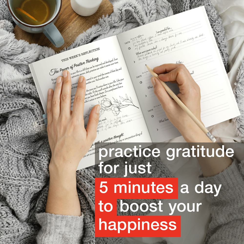 It’s time to make some immediate changes in how you feel each day. Transform your life in just 5 minutes a day with our "5 Minutes to Happiness" gratitude journal, specifically designed for women!