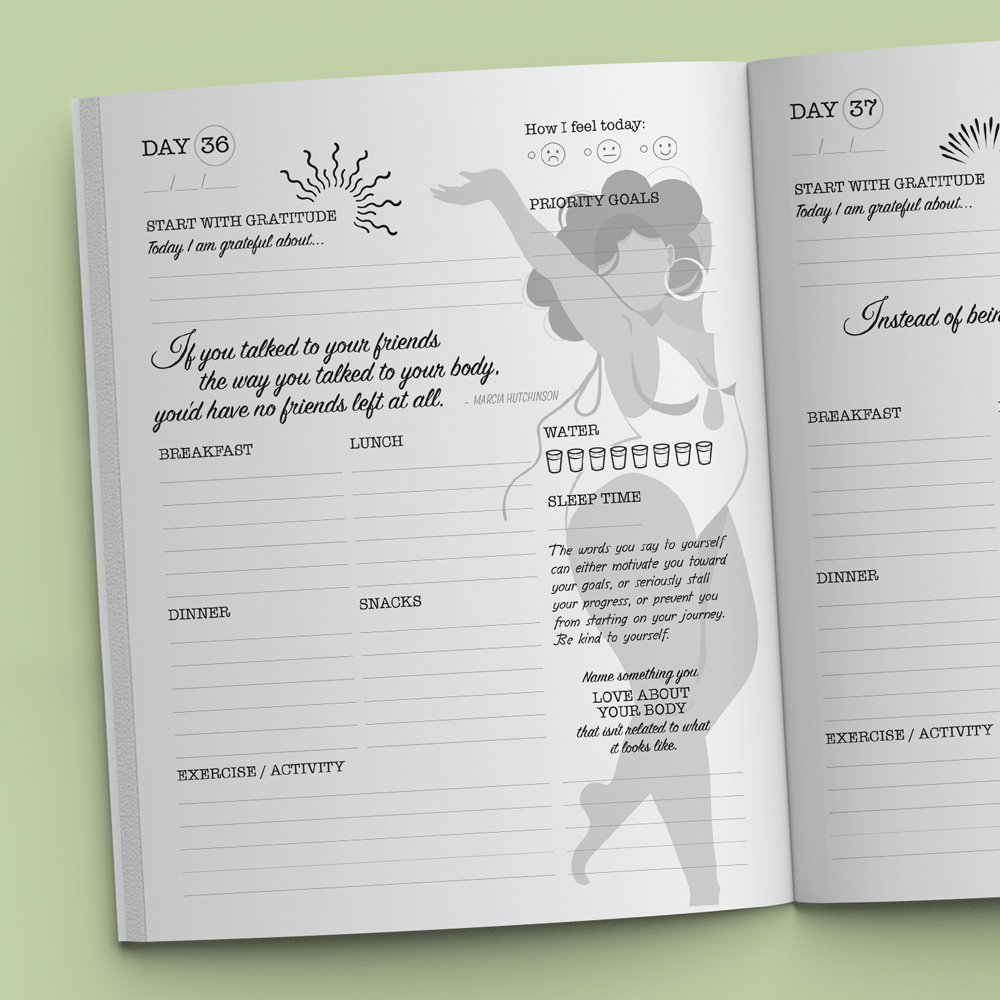 Each day, you'll be greeted with thought-provoking prompts, practical tips, and advice aimed at enhancing mindfulness, self-love and confidence. Each day it will guide you in nurturing your physical, emotional, and mental well-being.
