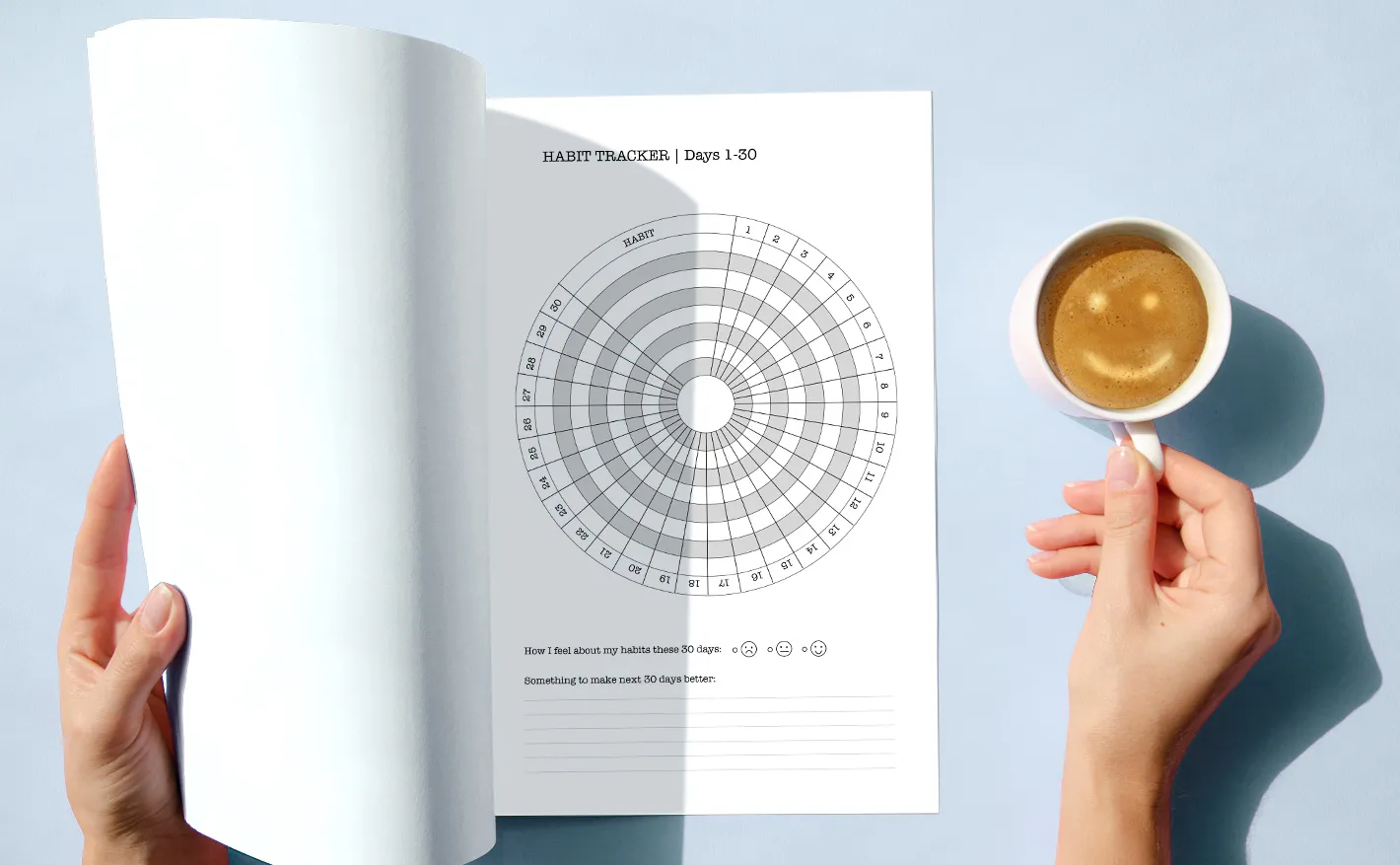practical tips, life hacks, and engaging worksheets. It includes useful tools like habit trackers